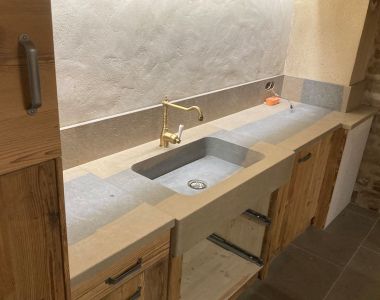 Plan de travail, vasque, dallage, parement : l’élégance, la sobriété et la robustesse de la pierre de Myon convient à tous vos agencements intérieurs et apporte une valeur ajoutée à votre bien